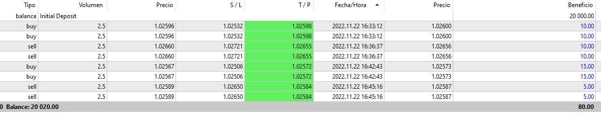 ¿Por qué ninguna de las cierres coincide con el TP? Todas las operaciones son iguales y tendrían q tener el mismo beneficio