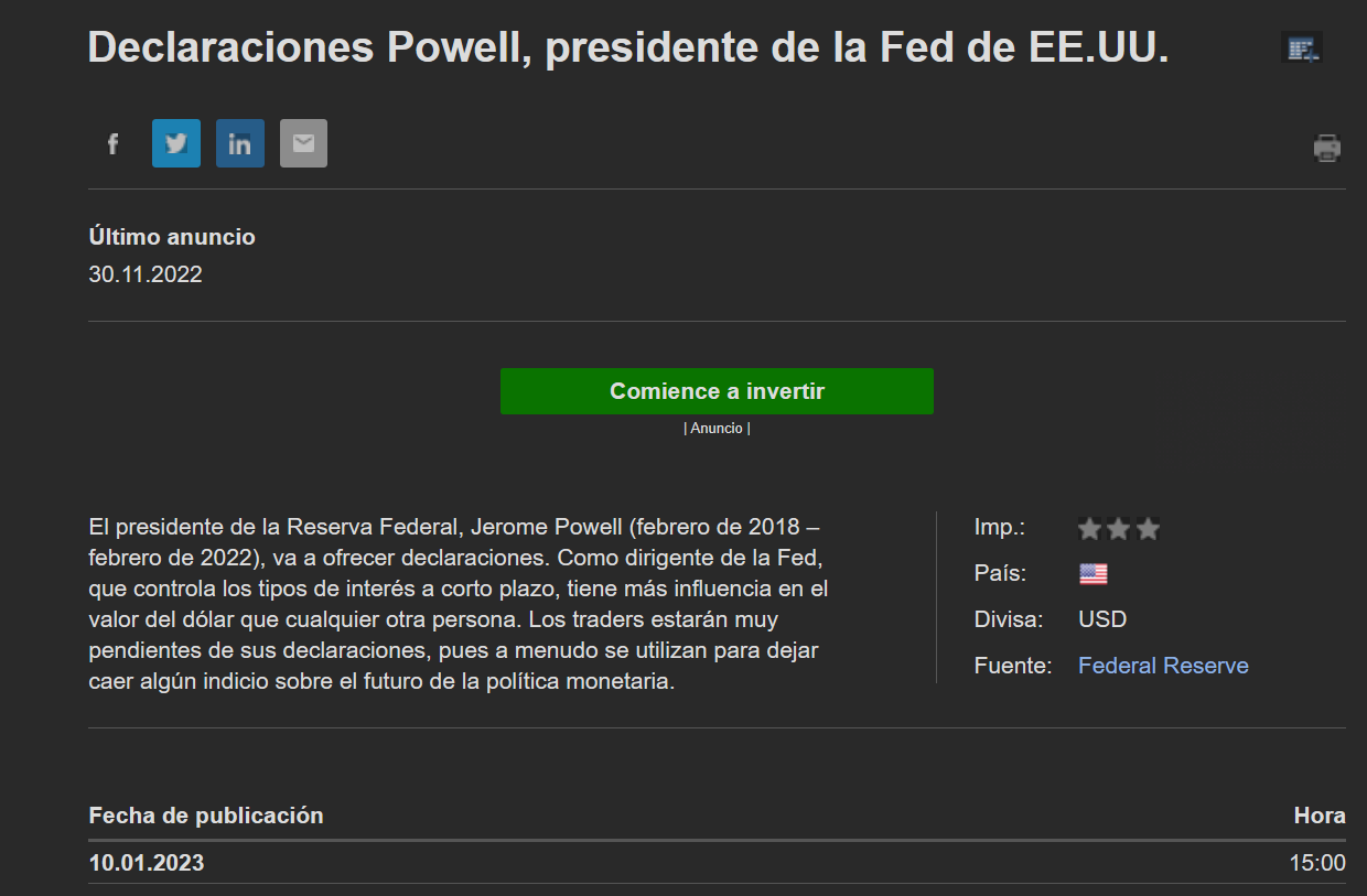 Si observas el mercado, verás que cada vez que hablan, imprimen volatilidad... hacia dónde se va a producir el movimiento? pues es tan ambiguo como la noticia, es decir, sabemos qué va a comunicar Powell? Y aunque lo supiésemos, sabemos qué va hacer el precio? La respuesta de ambas preguntas que es un simple no.Xarrupet escribió: 10 Ene 2023 05:20 Bones!