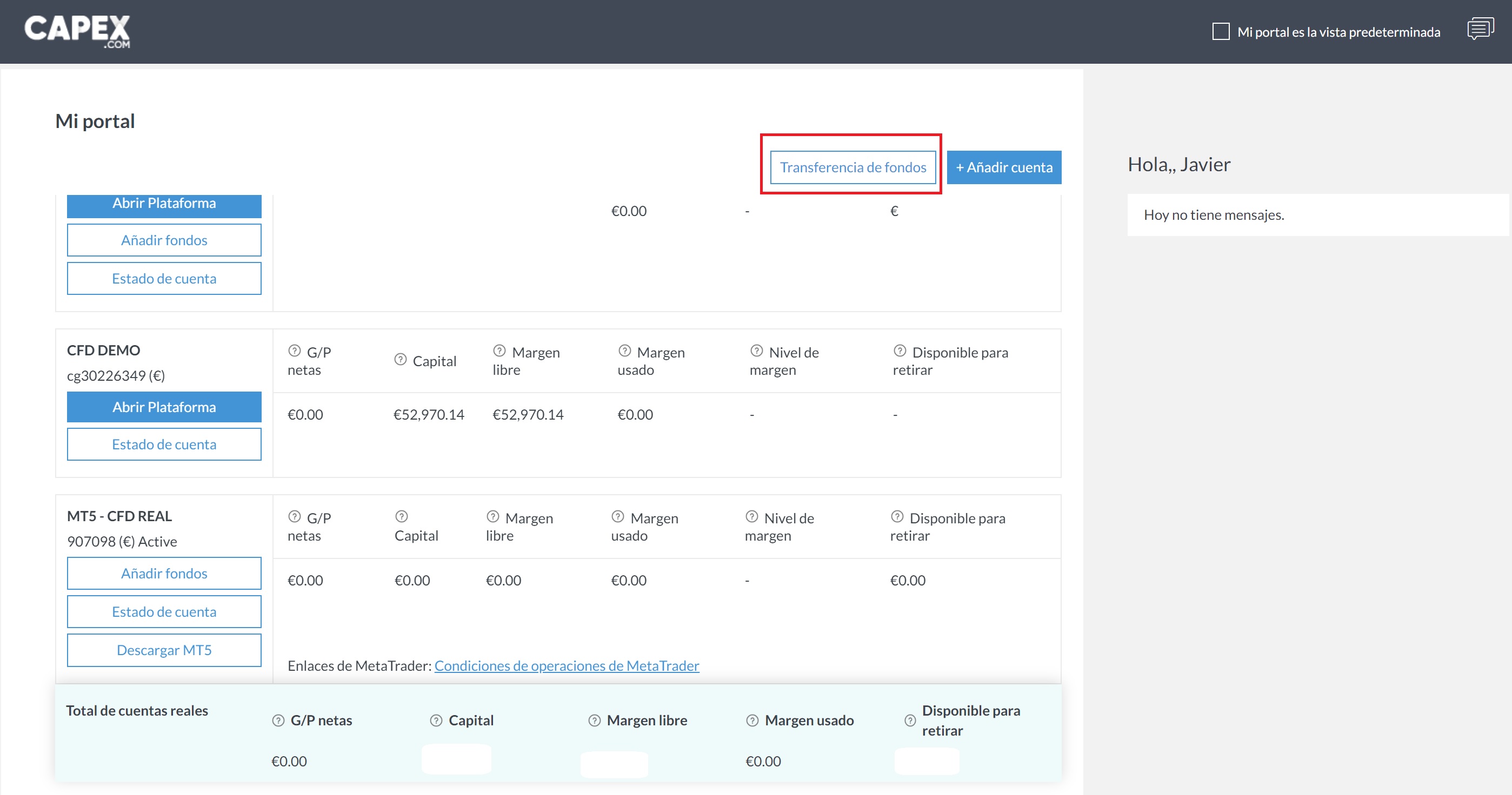 A esto me refería ayer, el broker te obliga a crear la cuenta para MT5 desde su web para darte el número de cuenta con el que te logeas en MetaTrader y desde tu cuenta del broker puedes transferir fondos a la cuenta de meta trader, esto es normal? yo pensaba que con la misma cuenta podía usar webtrader de mi broker o bien MetaTrader, sin necesidad de abrir otra cuenta ni transferir fondos ni nada, dejo unas imágenes que lo ilustren pq seguramente no me explico bien: