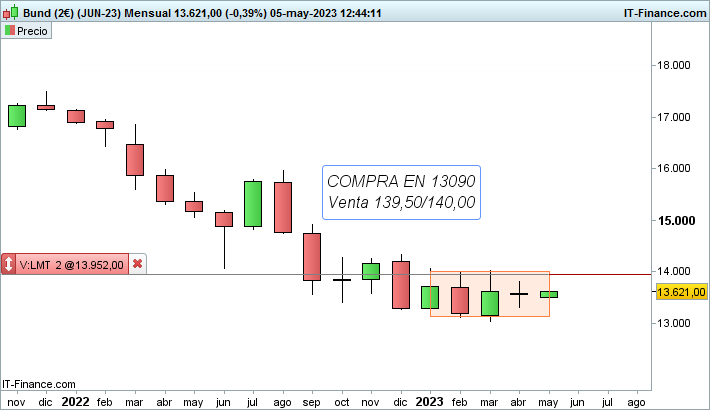 Bund en grafico mensual hay techo en zona 139/140 ahí venderé con stop amplio, en relacion con el objetivo de beneficios.