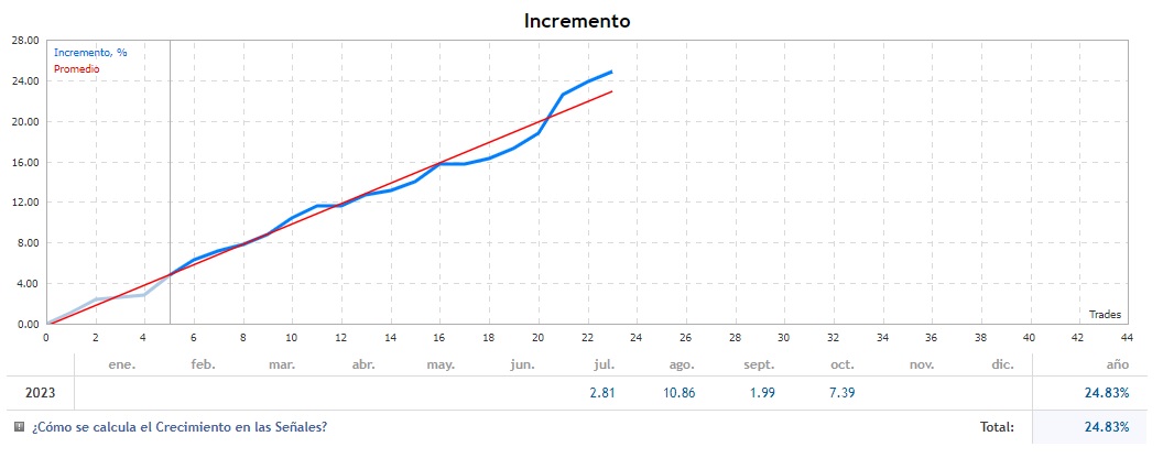 Buenas Klimber, no está nada mal ese resultado, la cuestión que tendrías que hacerte ahora es: ¿qué has hecho para obtener ese resultado? ¿Es posible convertir en reglas lo que has hecho y cuantificarlo? Por otro lado, hay una cosa que me gusta mucho de ese gráfico y es tu elevada tasa de acierto (cercana al 90%) que se compensa con un drawdown cercano a la rentabilidad obtenida (-17%, eso ya me gusta menos). Si lograses reducir el riesgo de algún modo, tendrías una excelente estrategia.Trader2010 escribió: 01 Nov 2023 15:58 Nov 1, Buen dia a todos , deseándoles éxitos en sus operaciones