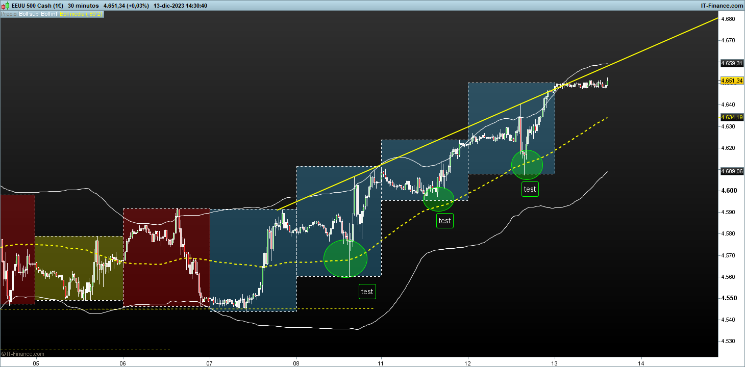 En cada timeframe, hay unas bandas de fluctuacion del recorrido del precio por desviacion tipica sobre su media