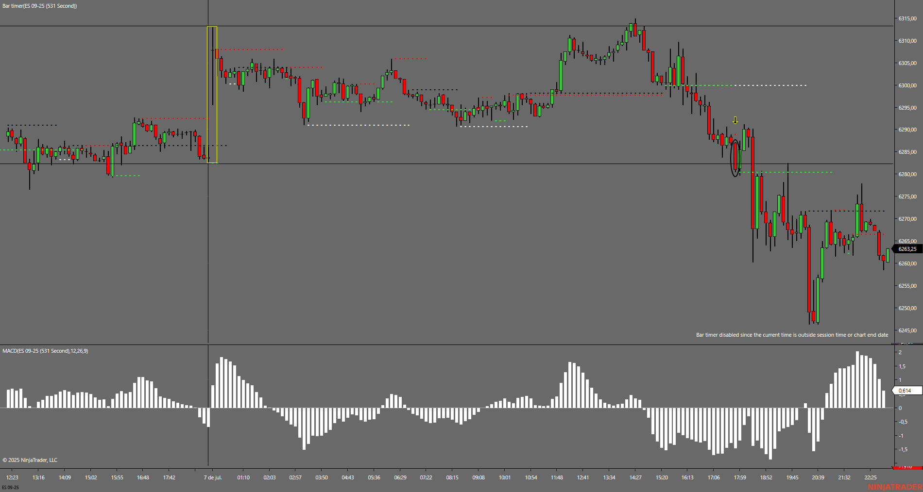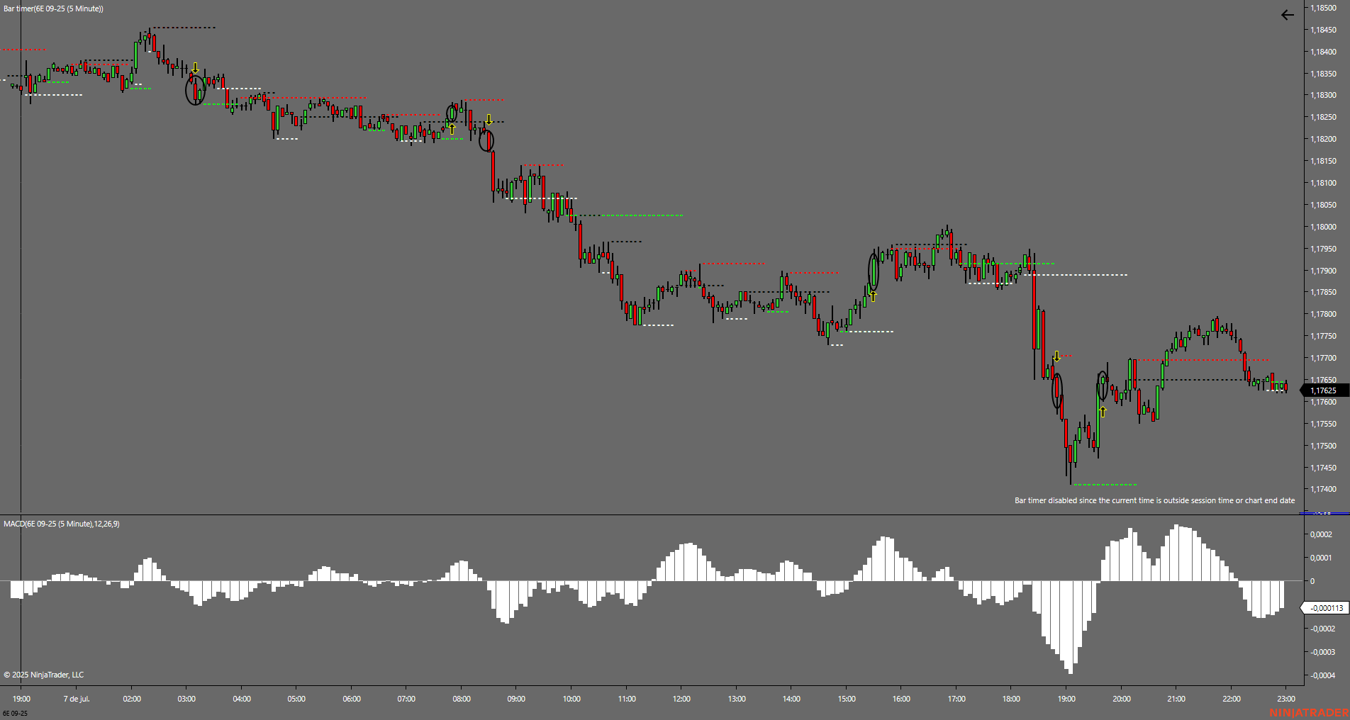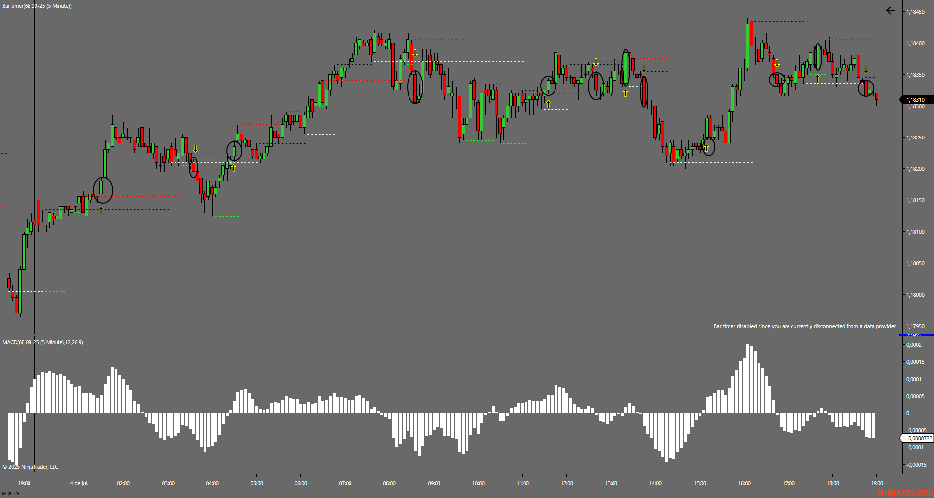 Como comenté en el primer post, vamos a comparar una sesión de mercado con un TF (cualquiera), en este caso uno de 5 minutos al azar, aunque se puede poner cualquier TF en comparación con un TF de marco matemático.