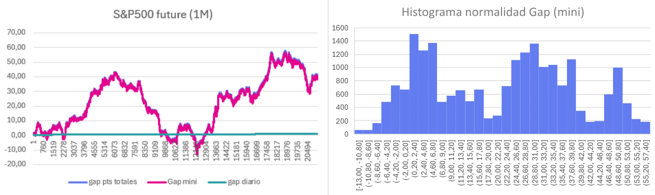 Quizá me equivoqué al calcularlo X, pero si que existen gaps mini ( gaps entre velas de 1 minuto, sin los gaps de apertura) en el SYP500 contado y futuro, diferentes de los gaps de apertura, y con posibilidad de extraer patrones a corto plazo.