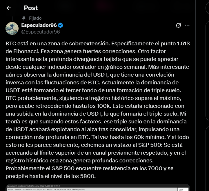 Mira, dando continuidad a lo que te mencionaba en el post sobre la estrategia que compartí...Es bueno que se entienda y se pueda demostrar de forma cuantificable que el Análisis Técnico es realmente útil. No se trata de noticias. La ventaja de un inversor está en los gráficos y en la forma de interpretar la información: El twit es del 19 de septiembre, y la publicación en TradingView del 10 de septiembre.X-Trader escribió: 11 Oct 2025 13:28No se te olvide la tremenda posición long Gamma que acumulan los dealers de opciones, como eso estalle, podemos ver una extensión de estas caídas (ya vimos ayer lo que sucede si dejas rodar una canica cuesta abajo... se hace bola de nieve y termina en alud!Gibranes escribió: 11 Oct 2025 08:37 Sí, Fercho, quizás estamos ante algo más que la simple noticia de las tierras raras, no lo sabemos, pero la señal es que el mercado está sensible.