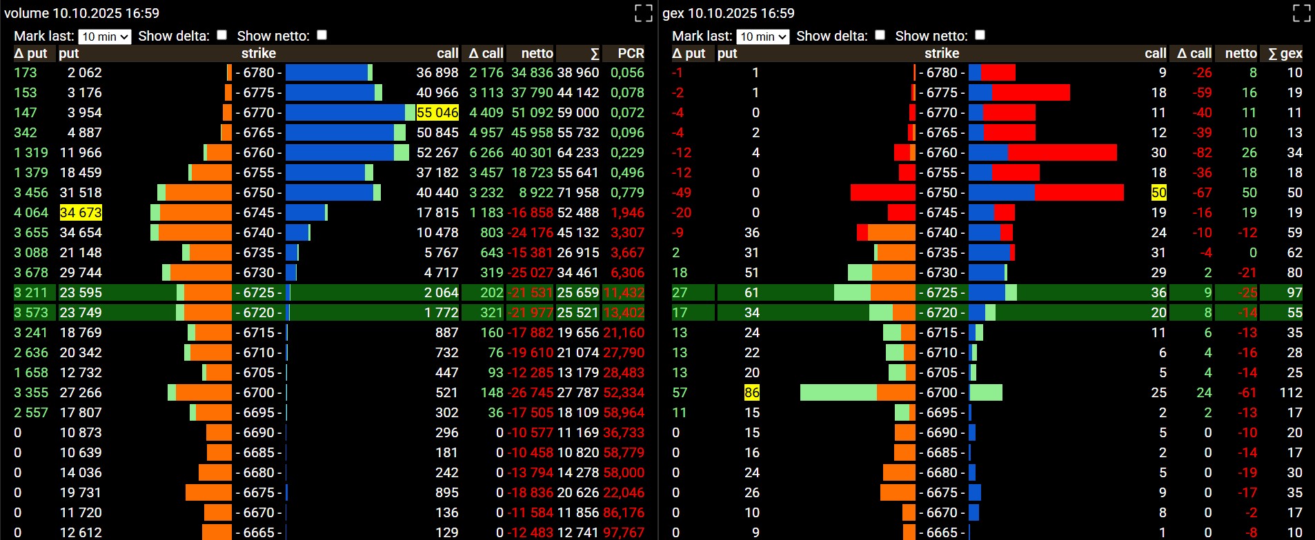 Y aquí la confirmación. Ya todo el volumen de calls es vendido y las puts compradas. Además en el Gex el rango se amplía por abajo. Bajista a tope.