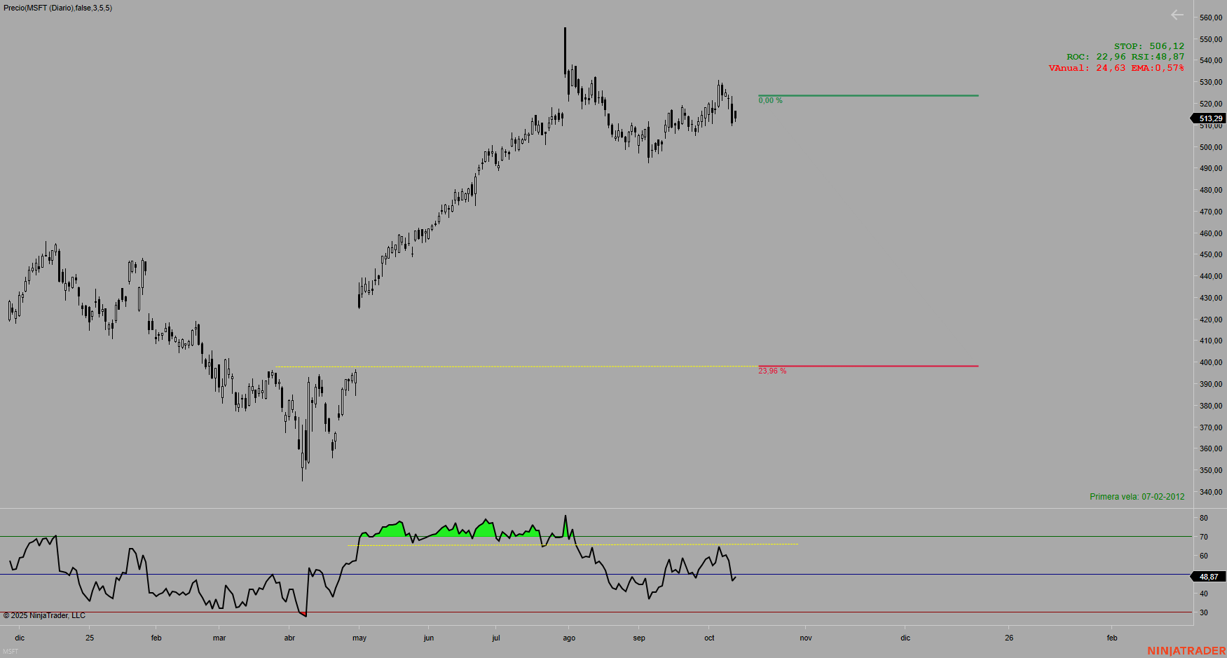 La primera señal la dará MSFT que es la que tiene una posición más comprometida de las tecnológicas a nivel técnico.