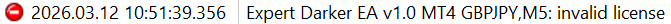 Bueno aprovecho para preguntarte por aquí una duda con respecto a eso (no sé si es el lugar adecuado). El motivo para pedir el código de esa EA es porque me ha dejado de funcionar, entiendo que porque se me actualizó a la versión 1460 de MT4 (suposición mía). Me pone todo el rato "Invalid license" en la terminal, y cuando arrastro la EA al gráfico me desaparece el botón de aceptar y no me deja ponerlo, solo aparece cancelar y restablecer.X-Trader escribió: 12 Mar 2026 08:48 Hola Cristianft, lo he intentado pero no ha habido manera, lo siento.