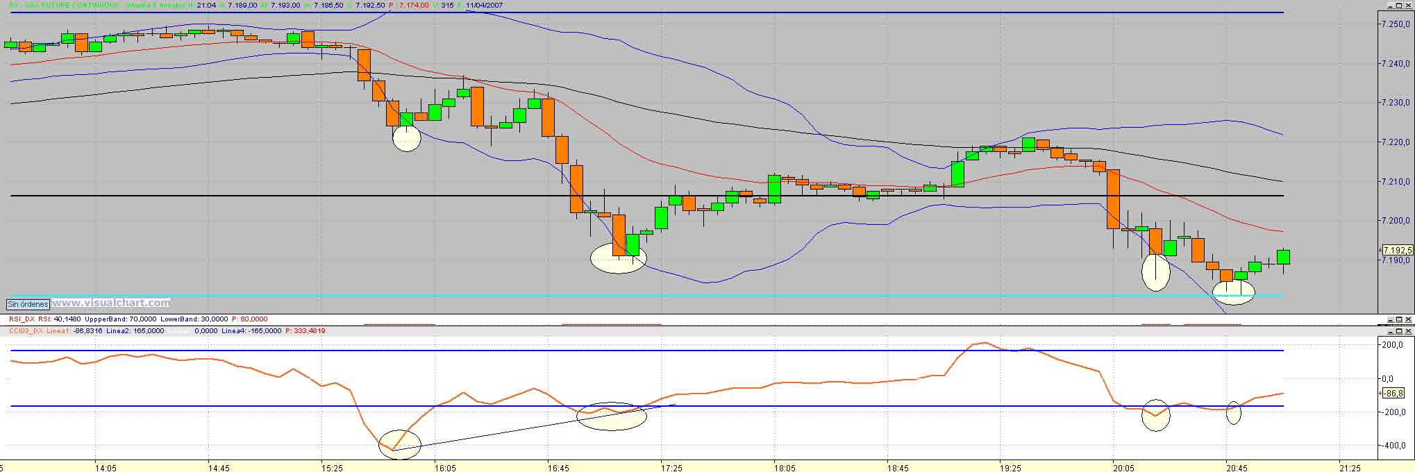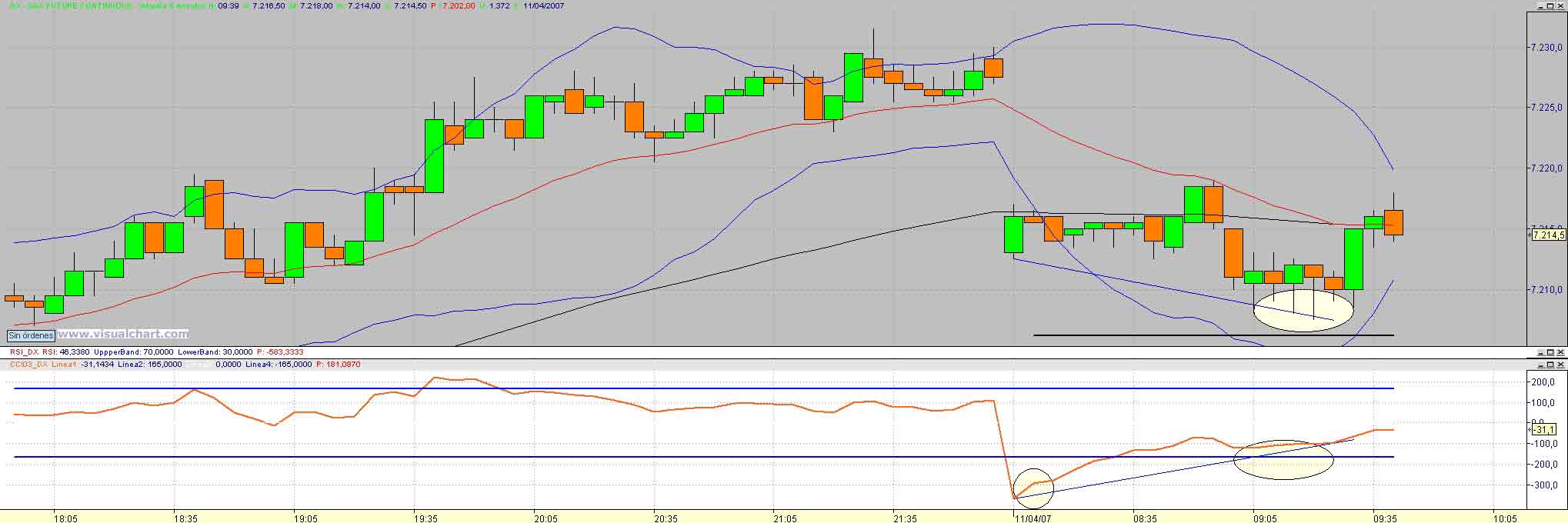 B tardes tras una mañana sin apenas posibilidad ( ni por movimiento ni por valatilidad) llego la apertura Usa y con ella el baile ese doble techo en 47 50 empezo a augurar un punto de ref con posibilidad de buscar unos cortos por sobrecompra con posible puntos de parada entre el 50% de Fibo (7228) y el 61% de Fibo (7223) coincidente con los maximos anteriores y a primera hora de la mañana donde dada la sobrecompra y el lugar de parada abrimos largos mientras mantenga la zona dicha 19 21 intentara en estructura un primer objetivo en 36 y posteriroemente el 40 42 Un Saludo