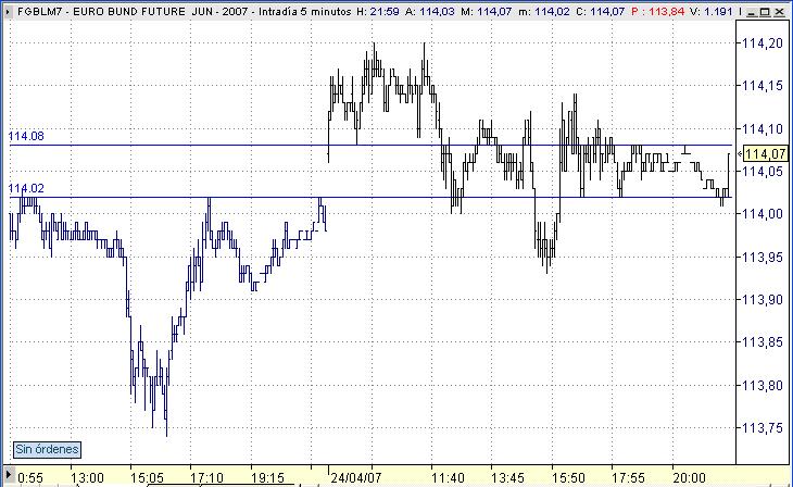 Parece que no habría sido mala idea abrir largos cuando hace un rato hizo mínimo de hoy en 114,04 y ahora que parece que nos quiere barrer el Stop tampoco, pero tranquilos, estamos pescando y para pescar hace falta paciencia y buen pulso. :D