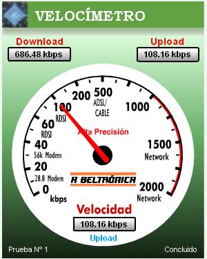 Hice la prueba con el Beltranejo este y mi adsl de timofonica baila todo el tiempo 850.32-225.12 kbps