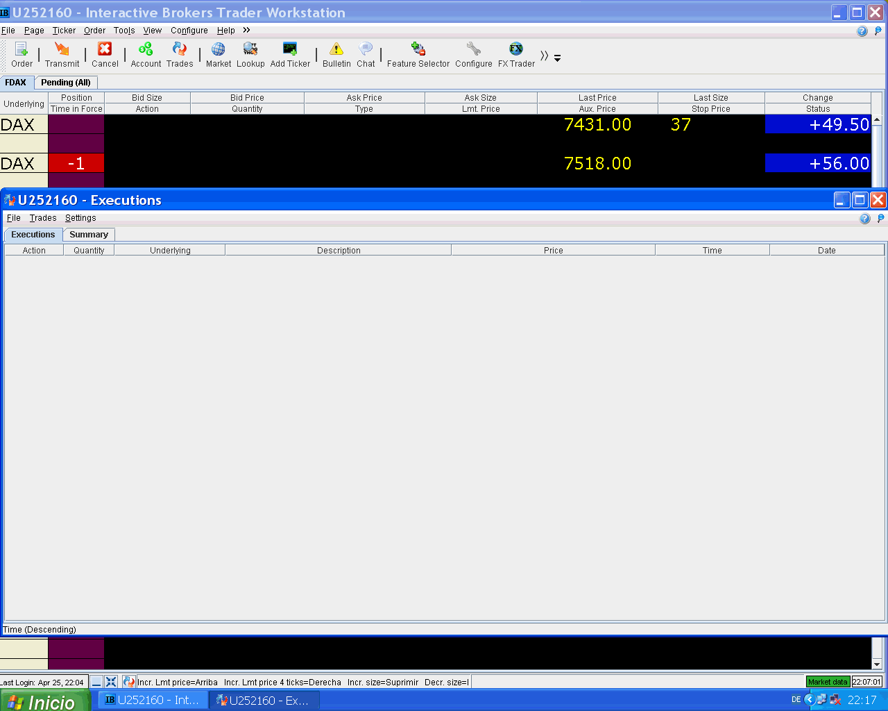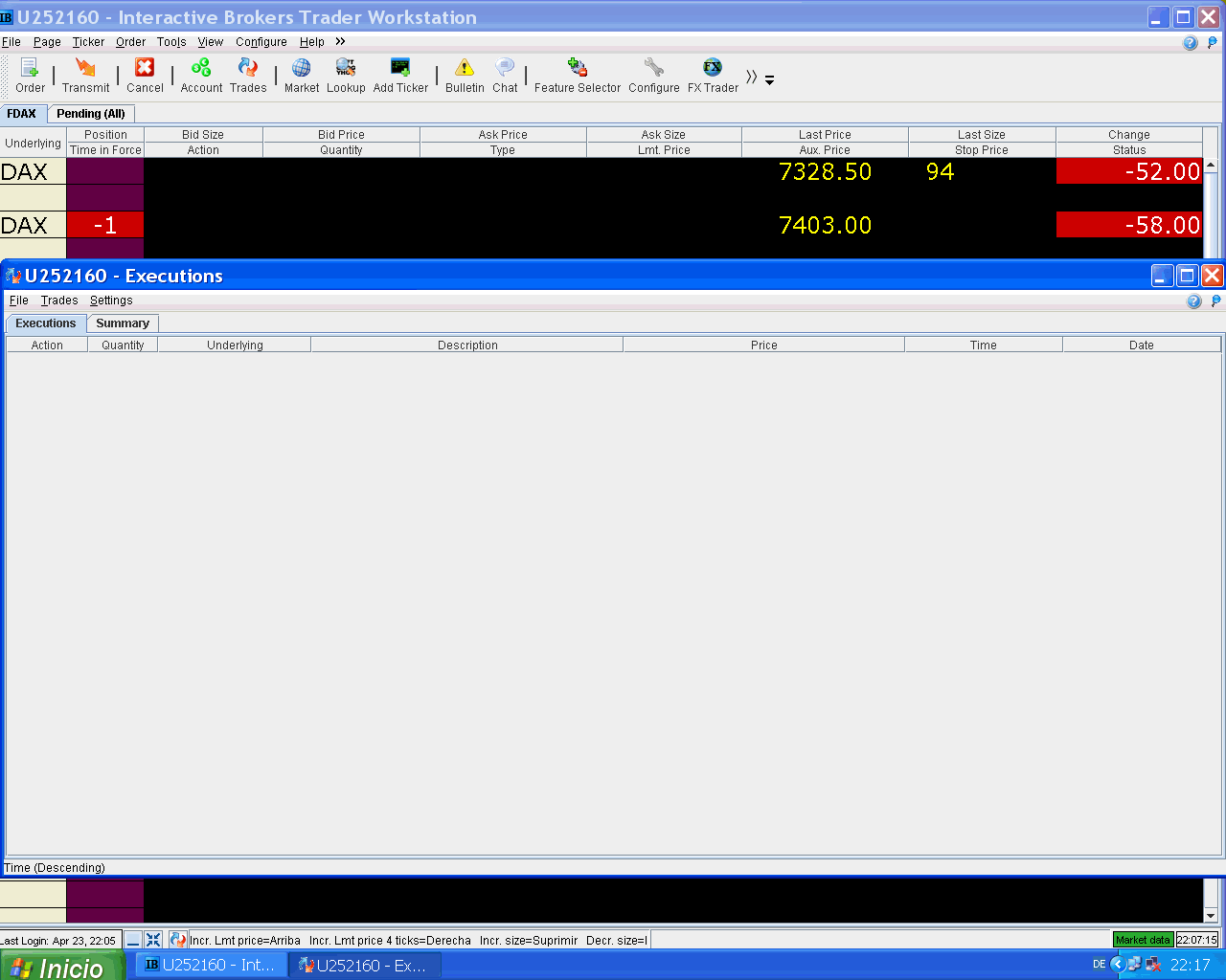 Evidentemente no quiero decir que la bolsa no vaya a bajar, pues yo de lo que va a hacer la bolsa no tngo ni puñetera idea, ni te critico en nada, pues respeto todas las formas de operar, todas las estrategias y todas las intuiciones... pues el mercado somos todos y tiene muchas patas. Ojalá tengas 2 futuros DAX comprados en otra cuenta, o negocios de otra índole que vayan de viento en popa.