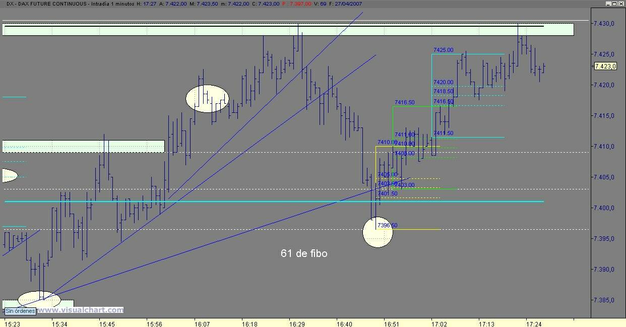 Casi sin tiempo este graf es la perfeccion en saber donde incarle el diente y meterle 80 puntos de dos operaciones, parece claro que los largos llegaron a donde tenian que llegar y .......... como no pasaron pues pal lao contrario y hasta donde?? el 61 de Fibo luego explico que tengo un par de operaciones abiertas Un Saludo