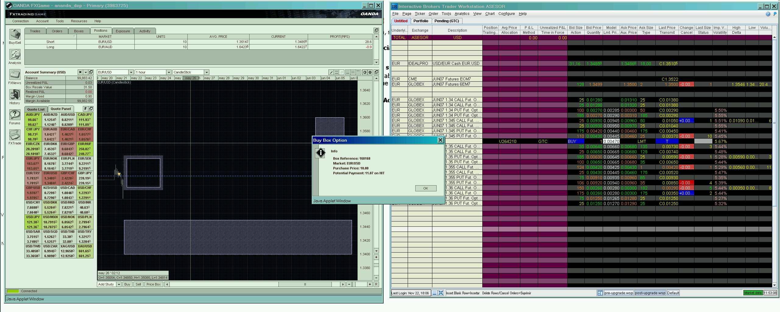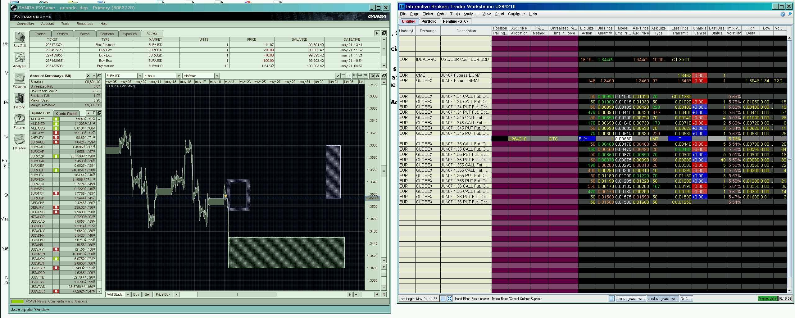 Buscar en la última página "x-trader contest". Comienza el próximo 1 de Junio por 3 meses. En lo posible por favor usar el mismo nick del foro para identificarnos. Cualquier estrategia y cualquier número de cuentas es válido. Primero hay que abrir una cuenta demo en Oanda.