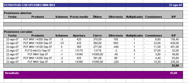 dada la situación de los mercados, he decidido compaginar mis últimos días de vacaciones con el inicio de una nueva estrategia de venta de opciones sobre el mini del ibex. Veremos que tal va.