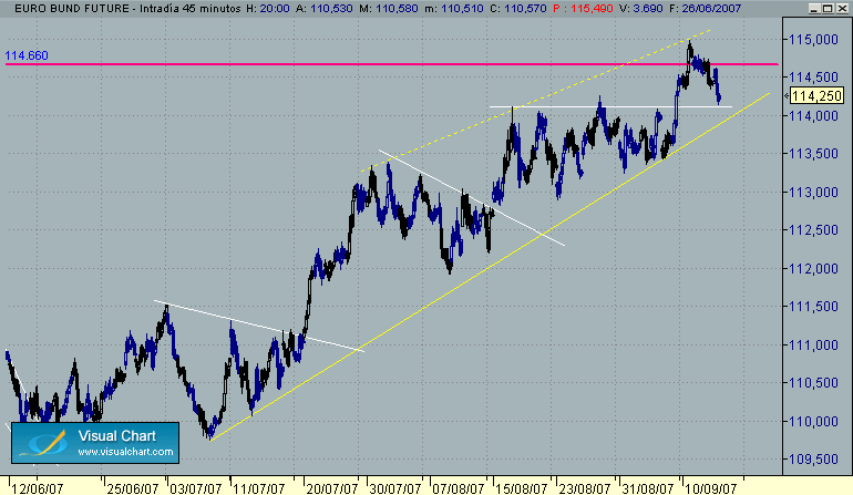 en bund los 112 son tela marinera tEcnicamente hablando incluiendo directriz alcista de largo plazo rota pabajo y haciendo de resis, al mismo tiempo q directriz de cort plazo bajista y todos los objetivos por abajo cumplidos, usea, rango megadefinido pa romper cualkiera de los dos ( 102.62 en schatz y 102.35s )