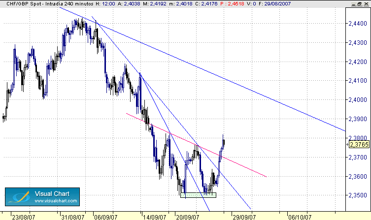 En analisis charsista hay una figura de vuelta H-C-H, con rotura clavicular, como la 2ª entrada era precisamente la ruptura de la linea clavicular, ya no se puede entrar ahi porque se produjo el dia 19-9 y no podemos retroceder en el tiempo, aun asi esa figura es una de las mas fiables del analisis tecnico y su objetivo de recorrido todavia permite entrar ya que todavia hay un buen recorrido del precio para cumplir el objetivo de esa figura, que lo cumpla o no es indiferente porque eso no esta en nuestras manos, pero ya que la entrada no es posible hacerla donde se debia en 1ª y 2ªseñal del sistema, en base a esa figura se puede buscar una nueva entrada si pullbakea la linea clavicular o en un retroceso que marque y el sistema vuelva a dar entrada larga, ya que la 1º entrada la dio en 4200 apx al pullbakear el precio la linea directriz bajista anteriormente rota,y formar el 2º hombro y base del canal actual formando divergencia en rsi en 45 minutos y posteriormente esa señal se confirmo en 240 y diario dando una 2º entrada en la clavicular y confirmando la señal el sistema en esas dimensiones mayores, siempre existe esa opcion de volver a entrar ya que el recorrido probable bien lo merece y el riesgo del Stp esta sobradamente recompensado, aunque no sea lo mismo que haber entrado en 4200 por supuesto, ahora hace falta que el sistema que yo uso en este caso de una entrada nueva a largos, se postearia el punto de entrada y el stop y la operacion estaria en marcha, como tu dices : "Se abre una nueva posición y si sale con barba San Antón ". jejejeje . esa es la idea