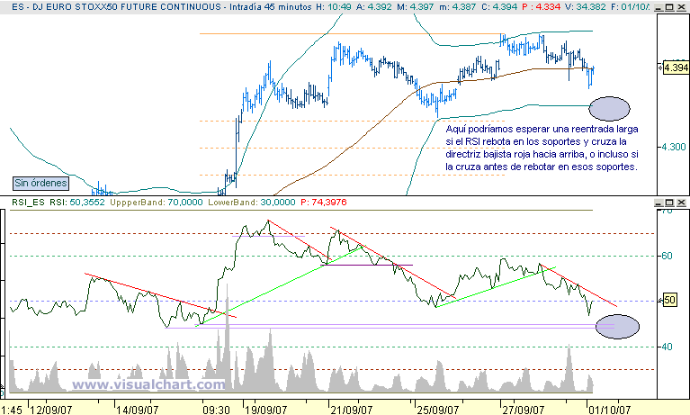H.Seldon, esas operaciones las puse como ejemplo de lo que pretendo en cuanto a publicar señales, ahora esas señales ya no tienen ninguna validez porque la planificacion y puntos de entrada iniciales que son los de menor riesgo forman parte del pasado, aunque el STXX este a mitad de su recorrido y todavia haya suficiente margen para arriesgar una tercera entrada y efectivamente ese planteamiento que sigues seria el correcto, buscar una entrada larga en 45 o 12 minutos o un apoyo del rsi en su linea directriz de 240 minutos, o alguna figura en cuña como la que esta construyendo en dimension de 45 desde el dia 28-9, la cuestion es que esa nueva entrada hay que trabajarla sin dejar que se escape al alza sin entrar.