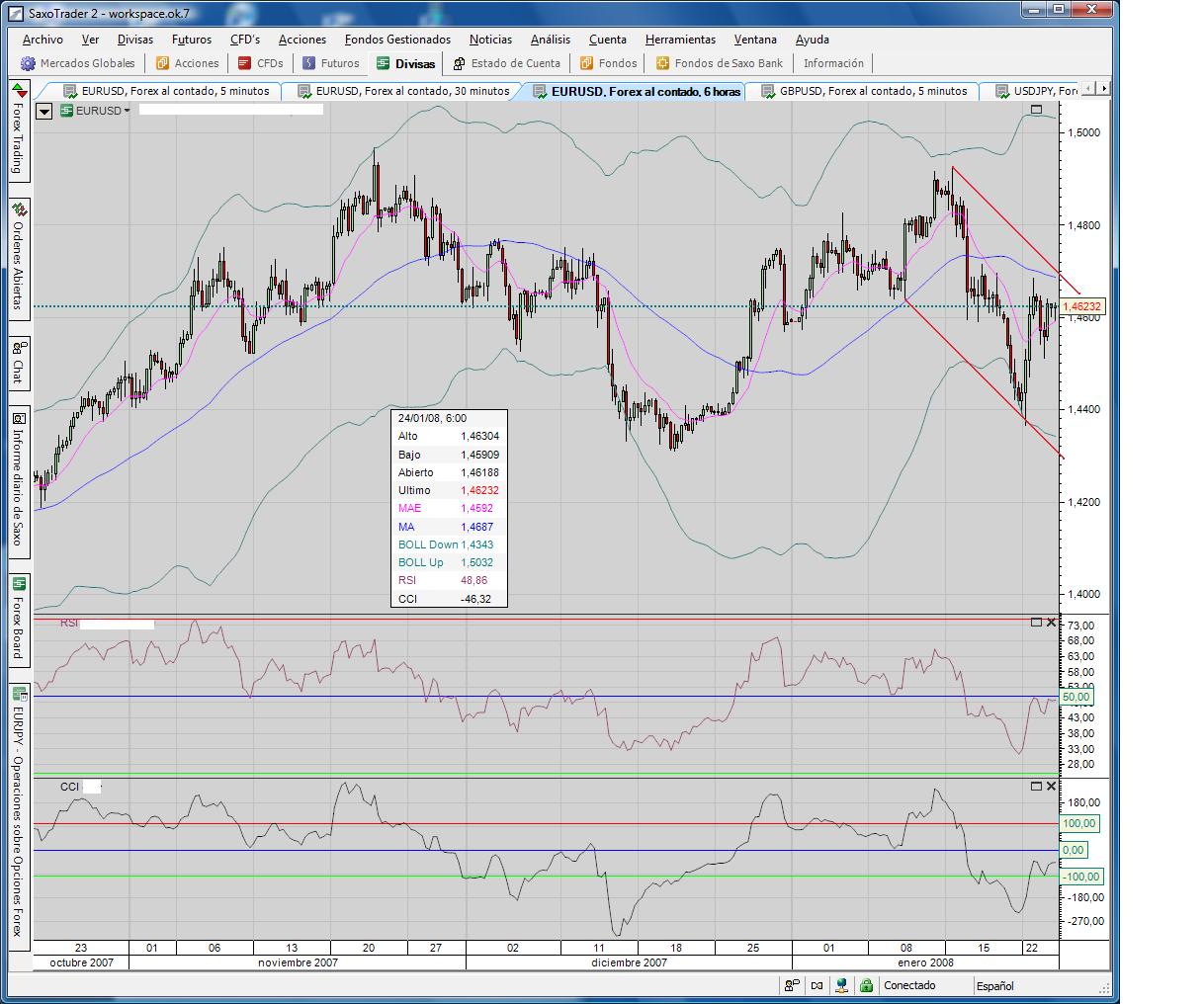 Creo que es un buen momento, para los próximo días, entrar en posiciones cortas en EURUSD y GBPUSD. Debido a que la subida de ayer fur brusca y contraria a su tendencia primaria (el mercado está fundamental), sin embargo ya vemos que empieza a bajar y seguir su tendencia.