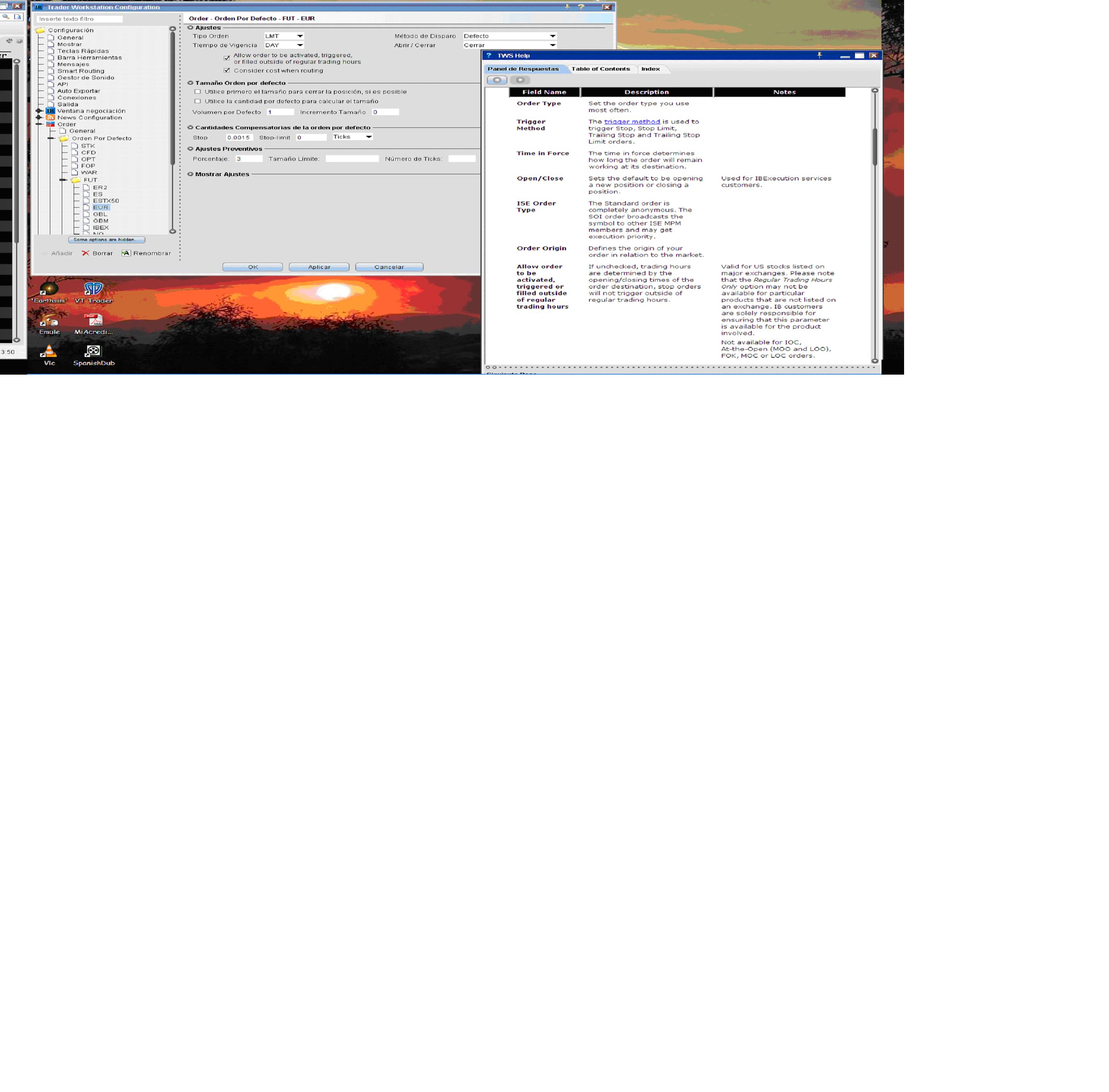 Hola a todos. Cotete, siempre creí que "dos tetas tiran mas que dos carretas" pero en este caso no sé. Ya he llamado un par de veces a IB y entre maquinitas por medio y luego llegué a una chica que de español sabe lo que yo de inglés con lo cual la conversación ha sido nula, vamos que casi casi ha sido por señas y eso que era por teléfono. Al final que llame en otra ocasión a ver si pillo a alguien que sepa español o yo me apunte a un cursillo de inglés. Vamos a ver, he entrado en configurar, order fut y he creado dos subcarpetas con EUR y 6EM8 y he activado la casillla de "....outside trading ..." y sigue sin funcionar las ordenes stop fuera de horario americano. El simbolo del fut que meto es 6EM8 , está correcto? Un saludo