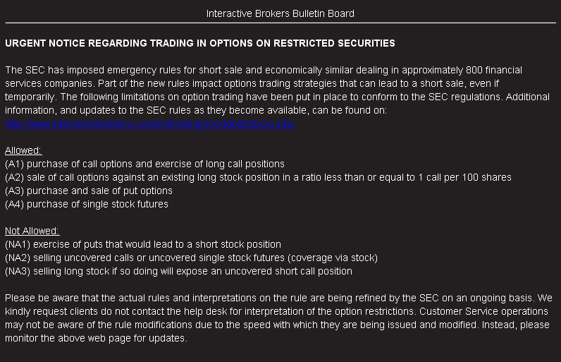 Esto es el timo de la estampita por parte de la FED, prohibe ponerse cortos a los peques principalmente ya que a los broker como IB los han secado, los de los CFD los prohiben, pero hoy hemos visto de nuevo caer a muchos bancos con fuerza en USA, con bajadas superiores al 20 %, entonces ¿quien es el que se pone corto? ya que según Bernanke y company eran los causantes del pánico.