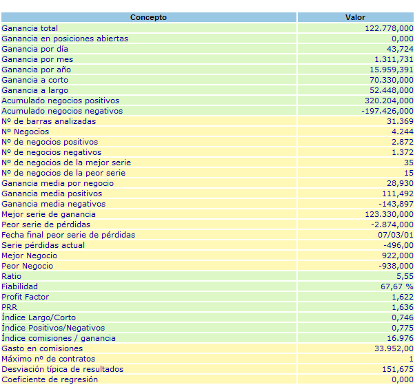 Aqui cuelgo las estadisticas del mismo sistema sobre el DAX.