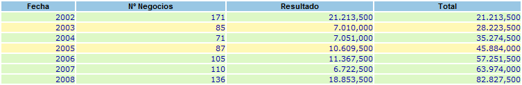 Tengo estadisticas del Eurostox de años previos, pero como el sistema es de tardes, y por entonces cerraban pronto, los datos son distintos pero los ratios no.