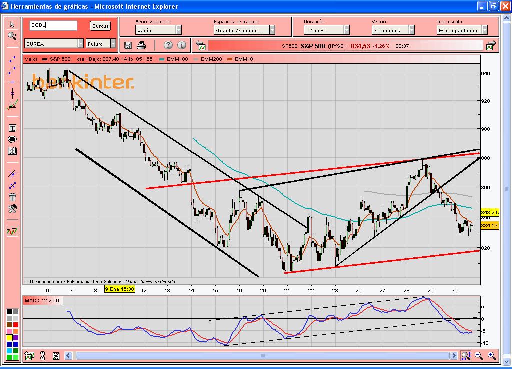 Pues sí DKV, el 2009 parece habernos traído una pequeña rotura del canal bajista que arrastramos desde octubre, pero como ya habéis comentado algunos compañeros del foro, el poco volumen la hace sospechosa.