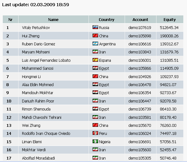 Me encontré luchando por unas posiciones para las que no estaba mentalizado al inicio del concurso y la presión pudo con mi estabilidad. Si alguna vez vuelvo a disputar un podium en un concurso forex, estoy seguro que ya estaré preparado psicológicamente. Esta experiencia me ha vuelto mucho más fuerte.etereo escribió:Acaso lo dudabas?
