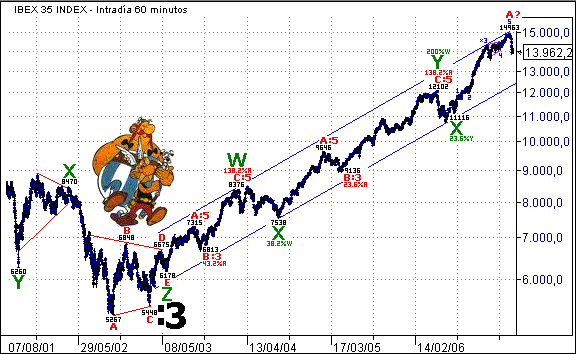 La idea parece cobrar sentido si observamos dicha estructura, al comprobar que las ondas B-C-D-E disminuyen en el tiempo, y aunque la onda A es mas corta que la B, encaja entre lo que podríamos denominar un Triángulo Contracto Irregular.