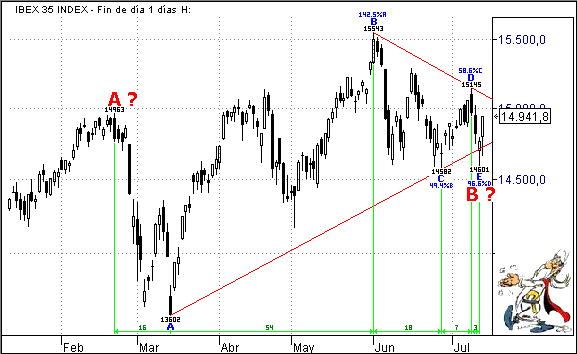 Esta onda podríamos englobarla como un movimiento de grado mayor que etiquetaríamos como Onda B (en rojo), maxime si se comprueba el espacio temporal relacionado con su predecesora Onda A.