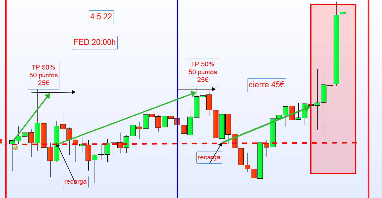 El mejor ejemplo para novatos de la estrategia es la operativa por la tarde con aperturas de posiciones y toma de benficios precisos.