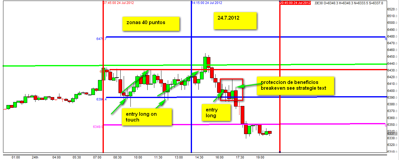 Hoy hubo dos entradas largas on touch pues los DJIA FUT rozaron beneficios. Por la tarde sin embargo la entrada