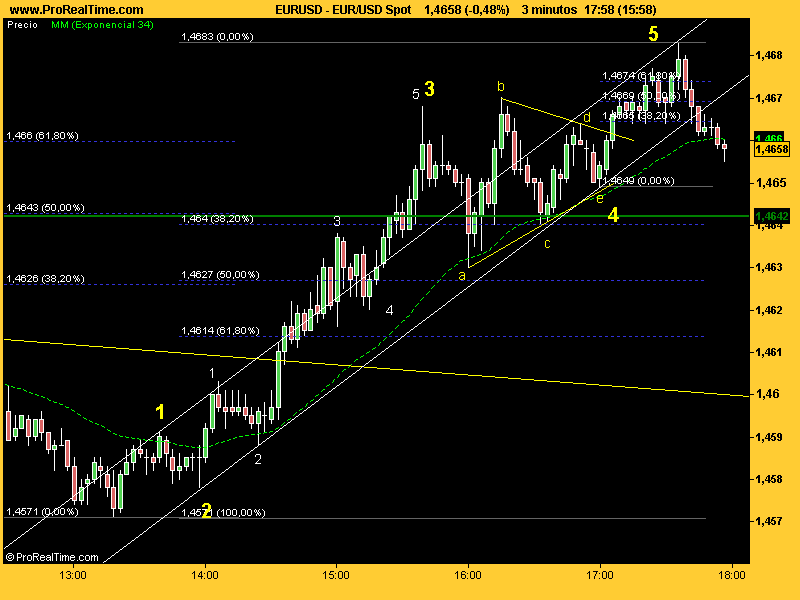 Hombre ahora que reflexiono leyendo esto post pues seré cauto. Ya no me apuesto lo que querais pero si que le voy a meter corto en 47, stop 4714 y si falla pos seguramente se valla a 48 donde le volveré a meter corto. Si pasa de 48 pues se deshace el hch y vuelta a empezarerredosdedos escribió: Sobre la pregunta del millón yo lo que veo es que hay un impulso desde el mínimo y eso significa que va a retroceder bastante. Me da que esta salida es la buena. La línea 2-4 que ha de romper está clara...al loro y parriba. Siguiendo con el rollete de la aceleración este retroceso parece más rápido que ninguno en toda la bajada con lo que tengo que pensar que es de mayor grado que los anteriores. Ha rebotao 100 pips en un momento. Yo me subo en el burro a la mínima que retroceda.