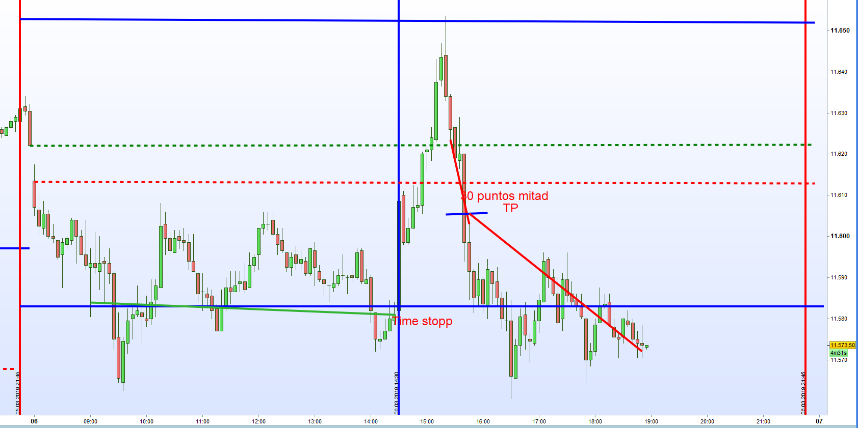 GeorgM escribió: 05 Mar 2019 18:11 Hay set ups que nos dan el pan de cada dia y extras. Estos lo operamos con mucho mas cautela. Quiero ver una Vela de 15M HA a la altura o debajo del max del dia.