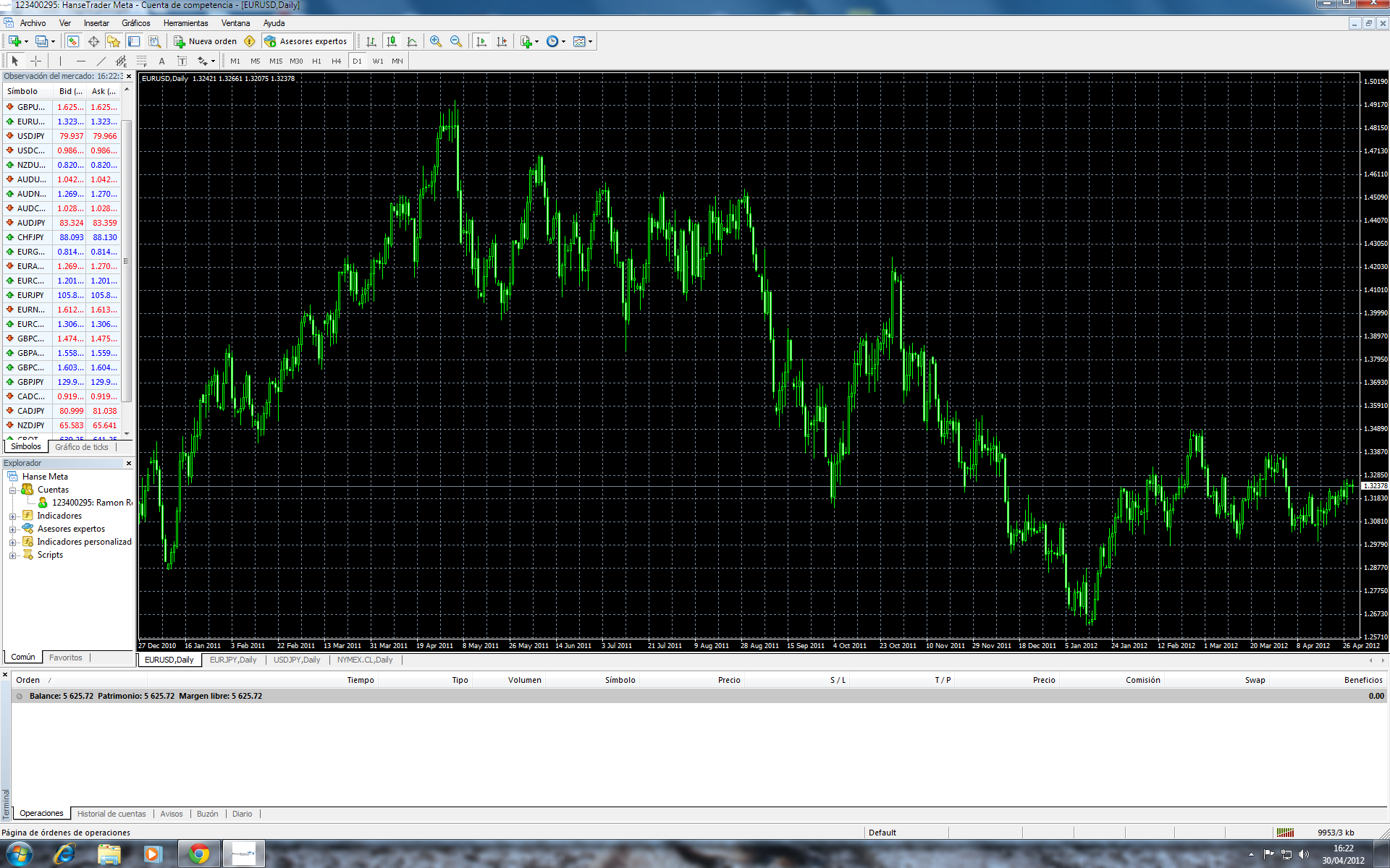Lo que no se es como se comportan lo mercados mañana, puesto que es 1 de mayo, y no se si en usa, tambien es fiesta como aqui... bueno... 625 euros en un dia, tampoco es tan poco, solo me han dado 5000 para empezar, y no tenia ni pajolera idea de lo que se podia hacer...