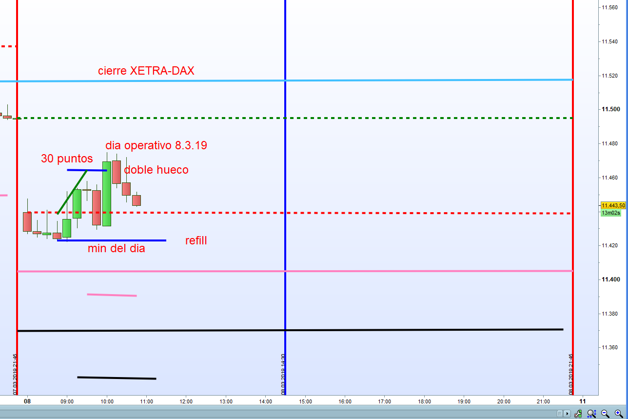 Precisamente lo estaba evaluando y resulta que ya en los ultimos anos no habia cambiado el horario es decir que la tarde empezaba a las 14:30h nuestra hora. A primera vista no parece logico. He pasado antes rapidamente los graficos de 2018 para ver cuantos time stopps habia y cuantos entradas despues de las 13:00h hasta las 14:30h hubieran producido beneficios o perdidas. La idea principal para los time stopps y la no apertura despues la 13:00h era para la mayoria de participantes que solamente querian operar por la manana ya que el 75% de los beneficos se ganaba por la manana. Con la volatilidad baja tampoco hay tantas extenciones de rango. Solamente ahora con los nuevos set ups por la tarde tiene la tarde mas interes y hasta pueda que unos solamente operan por la tarde.