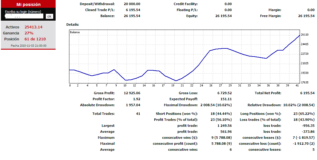 Lo que no hago es estar pendiente del sistema, eso fijo, si no ya la habría cagado, supongo. Lo único que he hecho a mano es aliviar posiciones cuando tenía, a lo mejor, 27 lotes buy y 15 sell, más que nada porque es tontería tener tanto abierto y mi sistema no hace OrderCloseBy, porque no me dio tiempo a implementarlo. Lo he hecho tres o cuatro veces, pero el resto del tiempo funciona el sistema solito, paso de tocarlo.