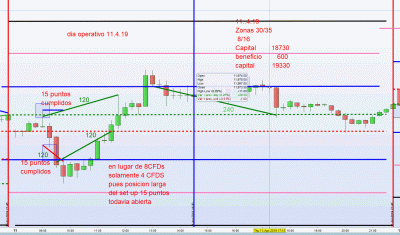 Adjunto los graficos de los 5 ultimos dias operativos. No hubo ningun dia de perdida con un beneficio de 1360€. El capital actual son 19450€ y por el momento seguimos la operativa con 8 y16 CFDs.