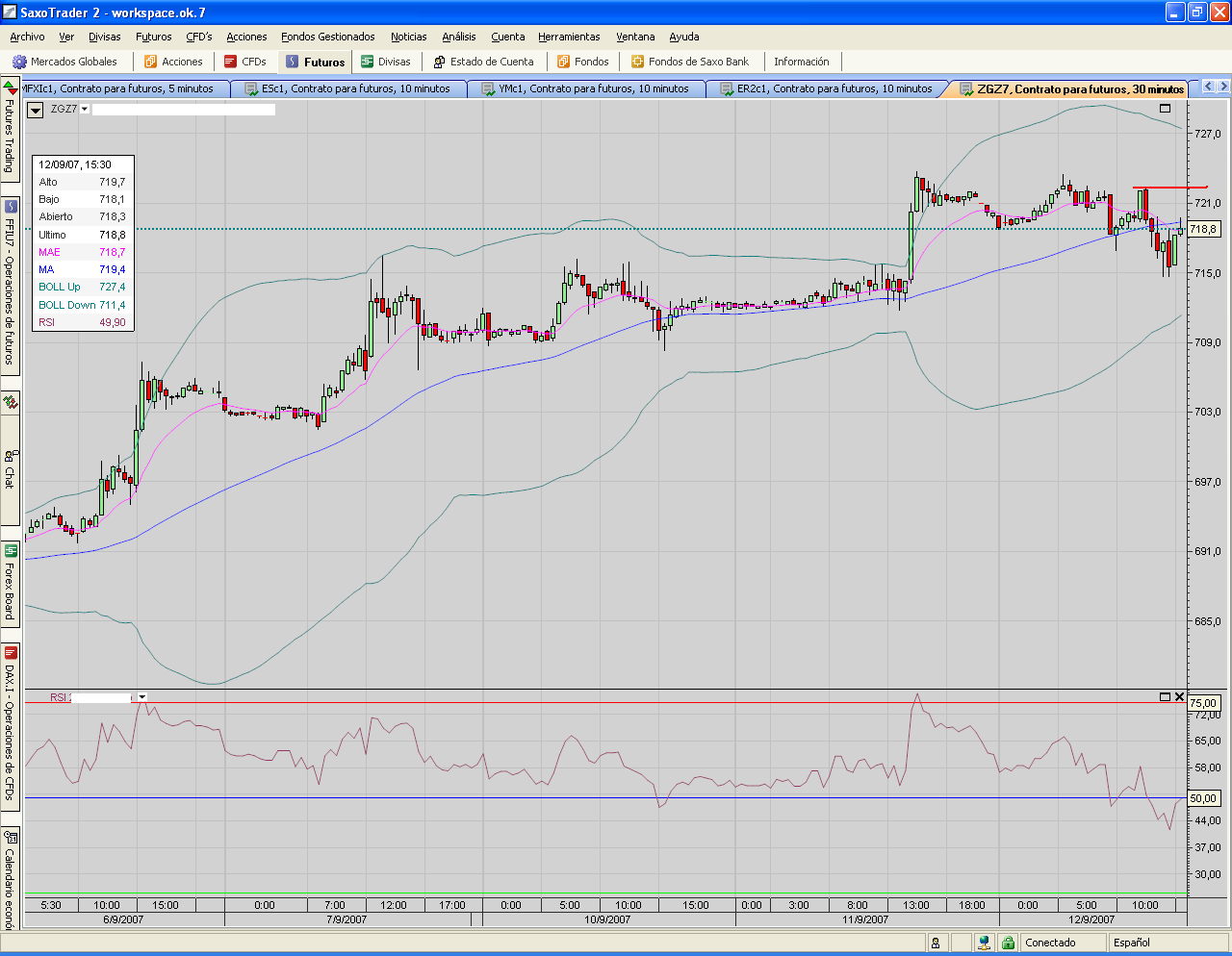 El futuro del gold (ZGZ7) parece haber encontrado suelo entre el 712 y el 713 de momento. Unos datos muy desfavorables para el dolar esta tarde facilitaría acercamiento a los 722 de nuevo.