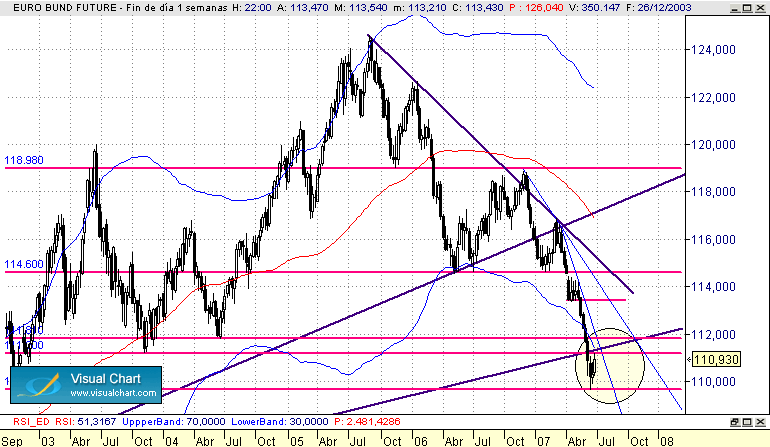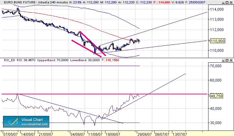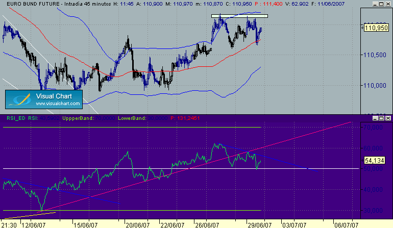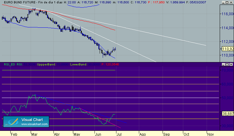Ahora pondre unos graficos siguiendo la dinamica que comento en el sistema, donde se ven las señales, el porque de estas, los objetivos etc... en una estrategia sobre el bono a diferentes escalas de tiempo desde la grafica diaria hasta el movimiento de esta tarde del dato.