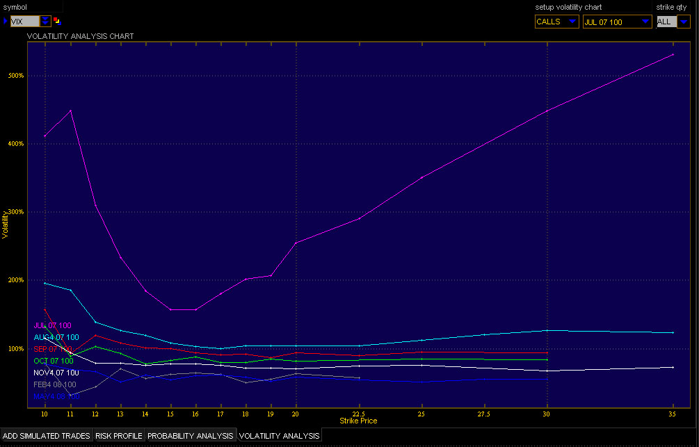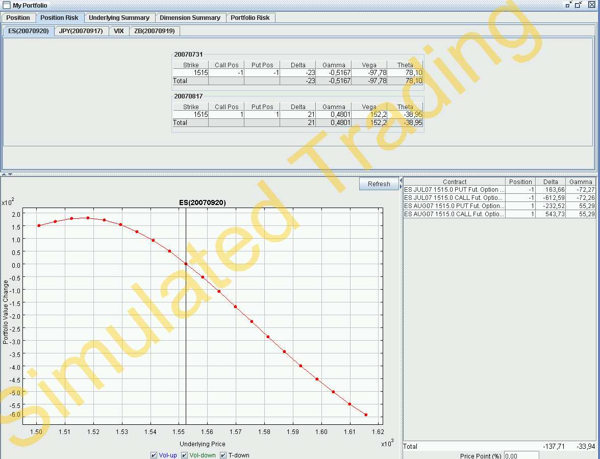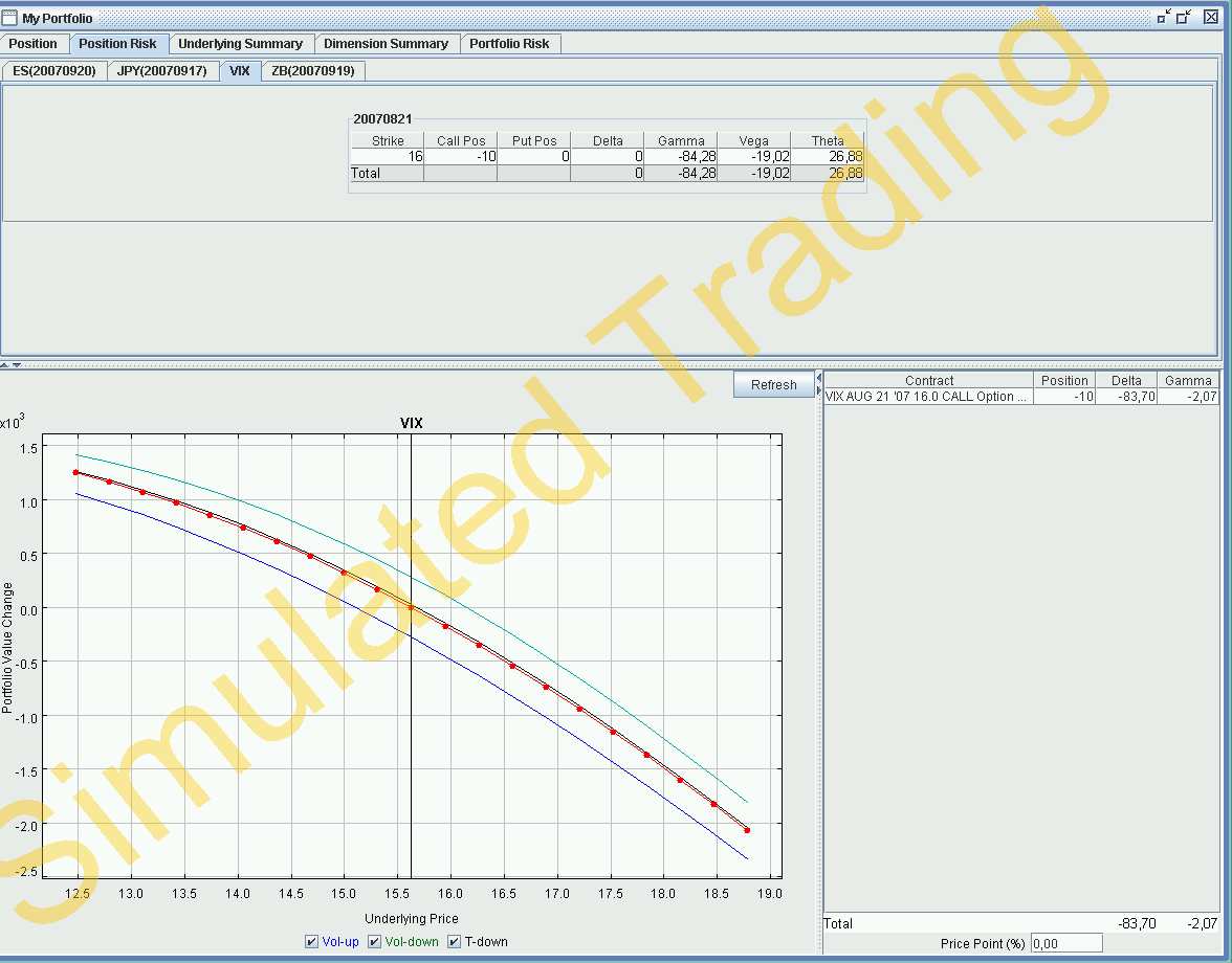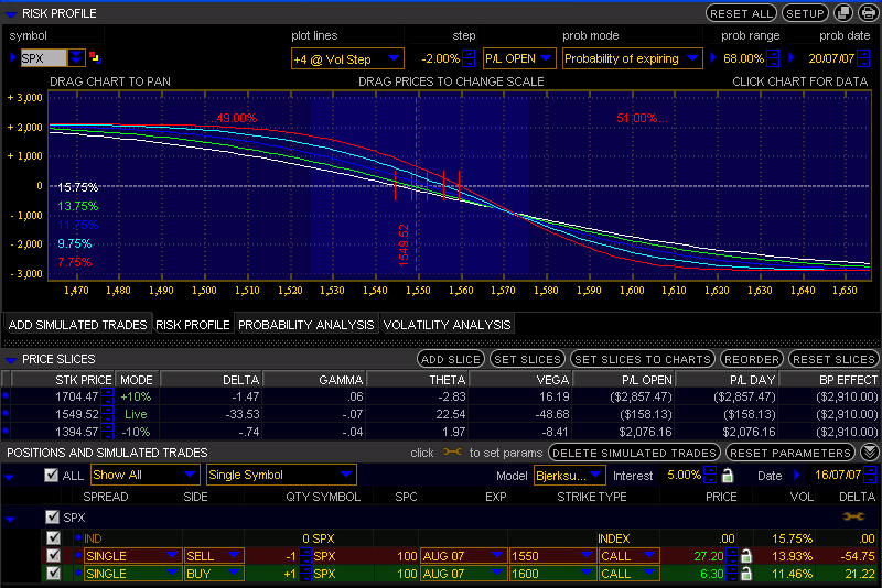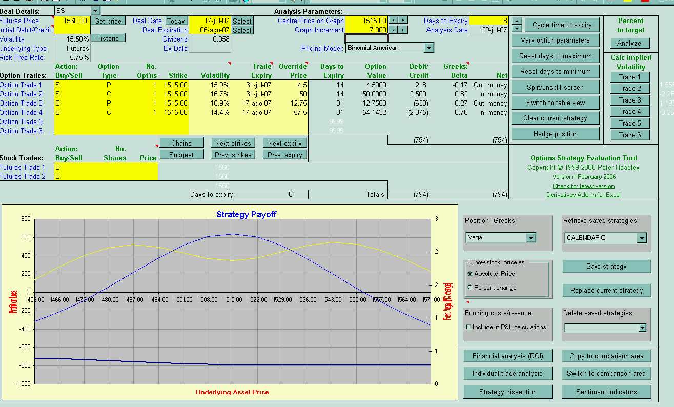 pd El gráfico es de las opciones spx, directamente sobre el subyacente, pero creo que servirá igual. Muestra la evolución del vertical en función de la caída de la volatilidad. (con el monitor del despacho los pantallazos quedan mejor pero a falta de pan...)