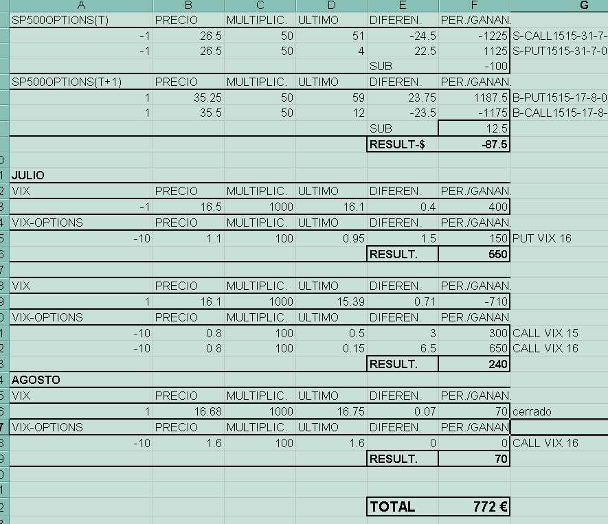 otra solucion a la hora de modificar el calendar es hacer beneficios con la call de agosto que se ha pagado a 61 puntos, 26 de benefico y comprar la call de agosto tambien a 25,5