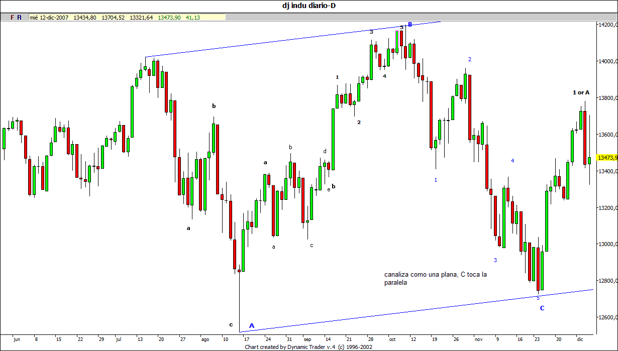 que es pa lo que más mola trabajar) y a tocarnos los webs todas las navidades que creo que rally habemus. Si nos saltan los stops, pos cagüentó y otra vez será...pero me da que no es otra, que es esta, jejejeje... Si este impurso del dow pasa el 161 (13490 points) ya podremos poner 3 y no C y...