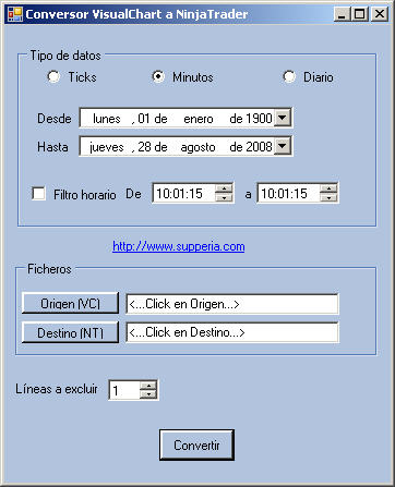 aquí dejo un programita para convertir históricos entre visual chart y ninjatrader.