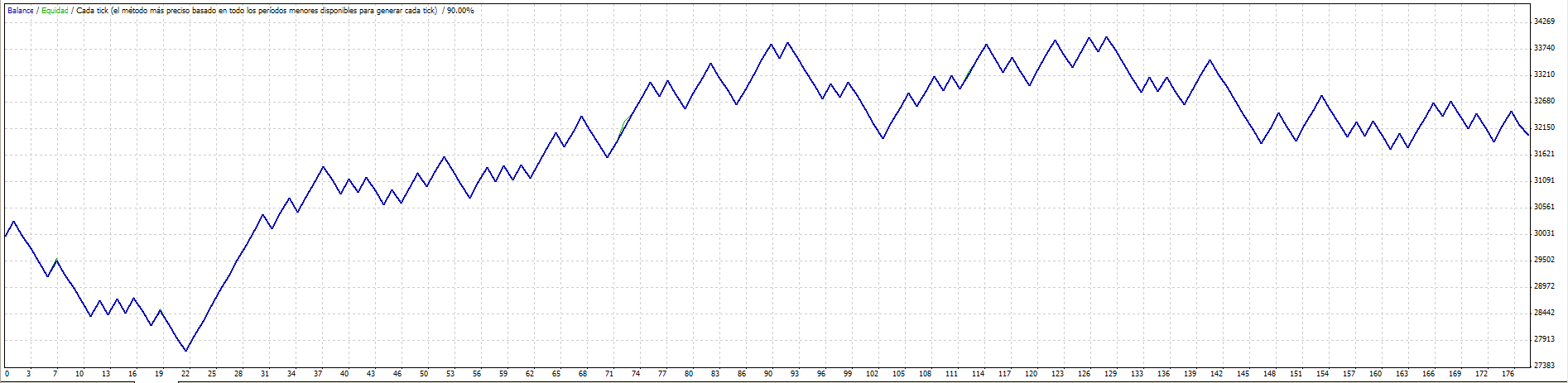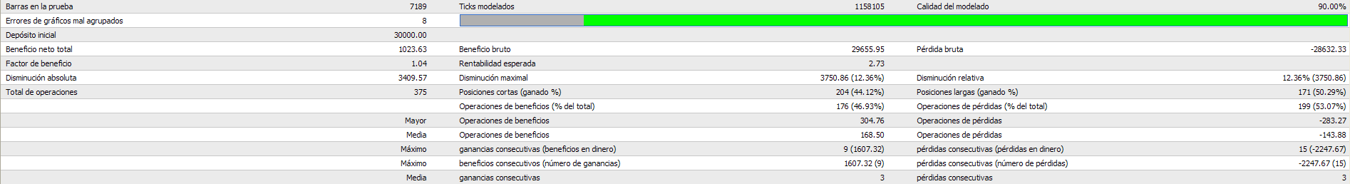 La primera impresión que tengo de la prueba programada es que la mejora viene por los promedios a la baja. El problema es que al tener que añadir contratos al alza para alcanzar beneficios en el mismo rango, perdemos mucho en esos trades por culpa de que acercamos los stops.