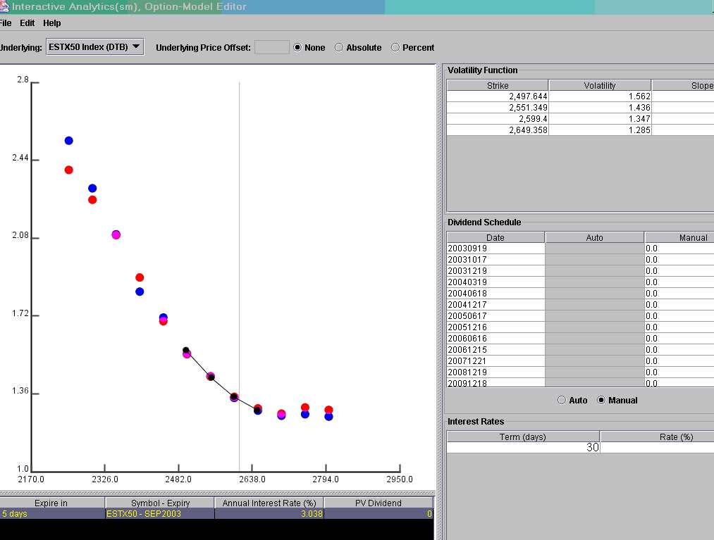 - La diferencia de volatilidades implícitas, conocidas como SKEW, y que no es otra cosa que la corrección que el mercado hace a la curva de distribución normal, provocando que las opciones de strike más bajo sean más caras que las de strike más alto (así los creadore encarecen las coberturas sobre las carteras de contado en acciones e índices).