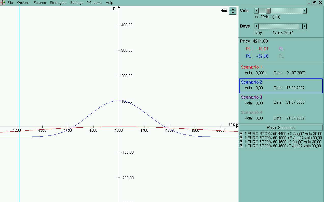 En el primer caso, como estamos montando una cuna por encima y por debajo del precio, las diferencias de volatilidades se cruzan y quedan anuladas. No sacamos ventaja de ello.