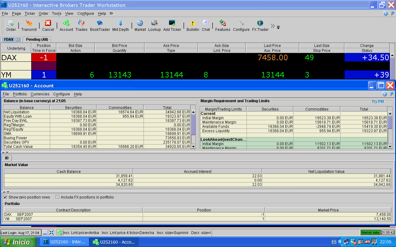 con la operación de los 2 Mini-DOWs he ganado 4.460 $, no está mal, igual me pueden hacer falta si se les da a los mercados por volver a subir, nunca se sabe.