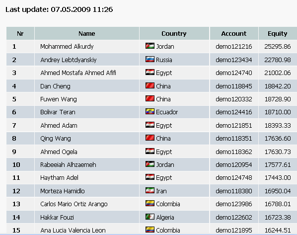 Respecto a los rivales tenemos al primer clasificado que ha multiplicado la cuenta por 2,5, ligéramente un poco menos que lo ocurrido en el concurso anterior. http://x-trader.net/phpBB2/viewtopic.php?t=9542&.